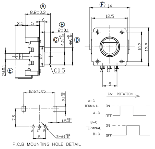 No IP RatingEC12 Механический поворотный энкодер для монтажа на панель в сквозное отверстие