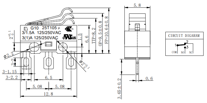 Этот микропереключатель для мыши — прецизионный электронный переключатель, предназначенный для высокочастотных нажатий. Он рассчитан на ток 3 А, имеет паяные контакты и классическую изогнутую ручку. Он широко используется в компьютерных мышах (особенно механических/киберспортивных), панелях управления небольшой бытовой техникой, промышленных кнопках и многом другом.
