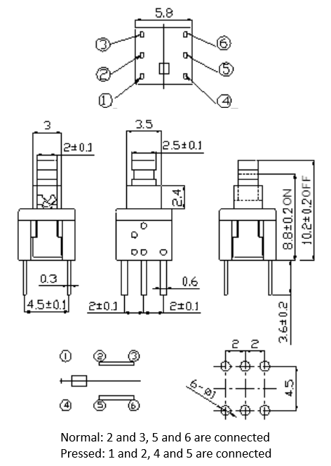 Тип: 6-контактный кнопочный переключатель с фиксацией