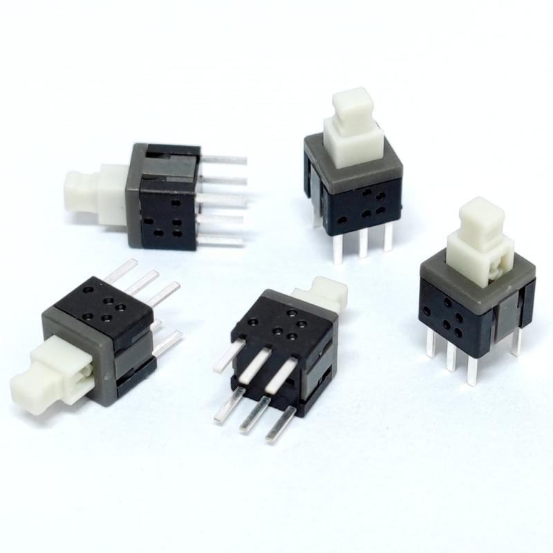 Тактильный кнопочный переключатель 5,8 мм с функцией блокировки и высокой головкой — это кнопочный переключатель мгновенного действия диаметром 5,8 мм, который поддерживает как мгновенное срабатывание (самовозврат, без фиксации), так и