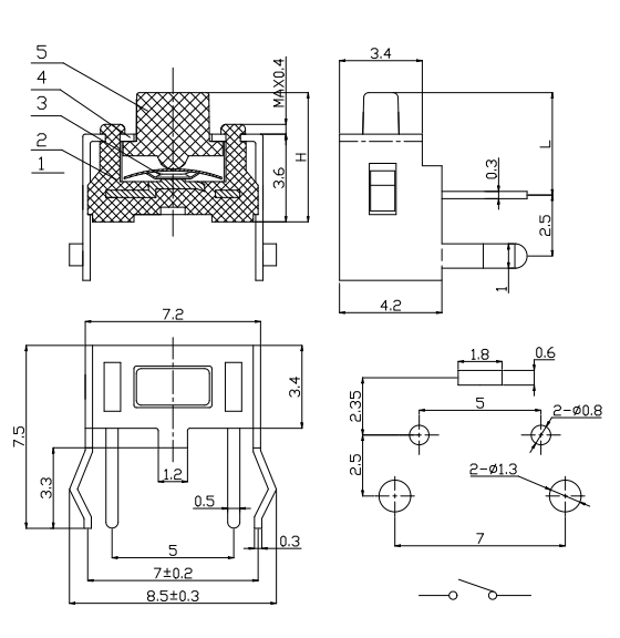 Тактильный кнопочный переключатель мгновенного срабатывания