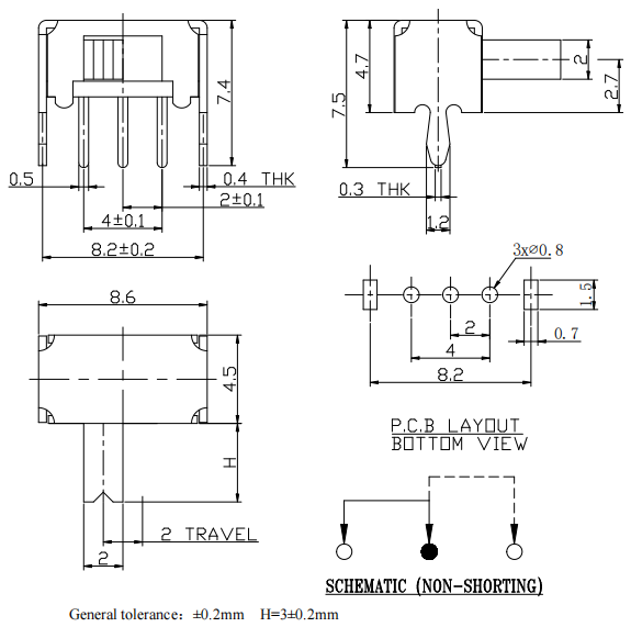 No IP Rating3 мм поднятый скользящий приводной переключатель для электронной схемы